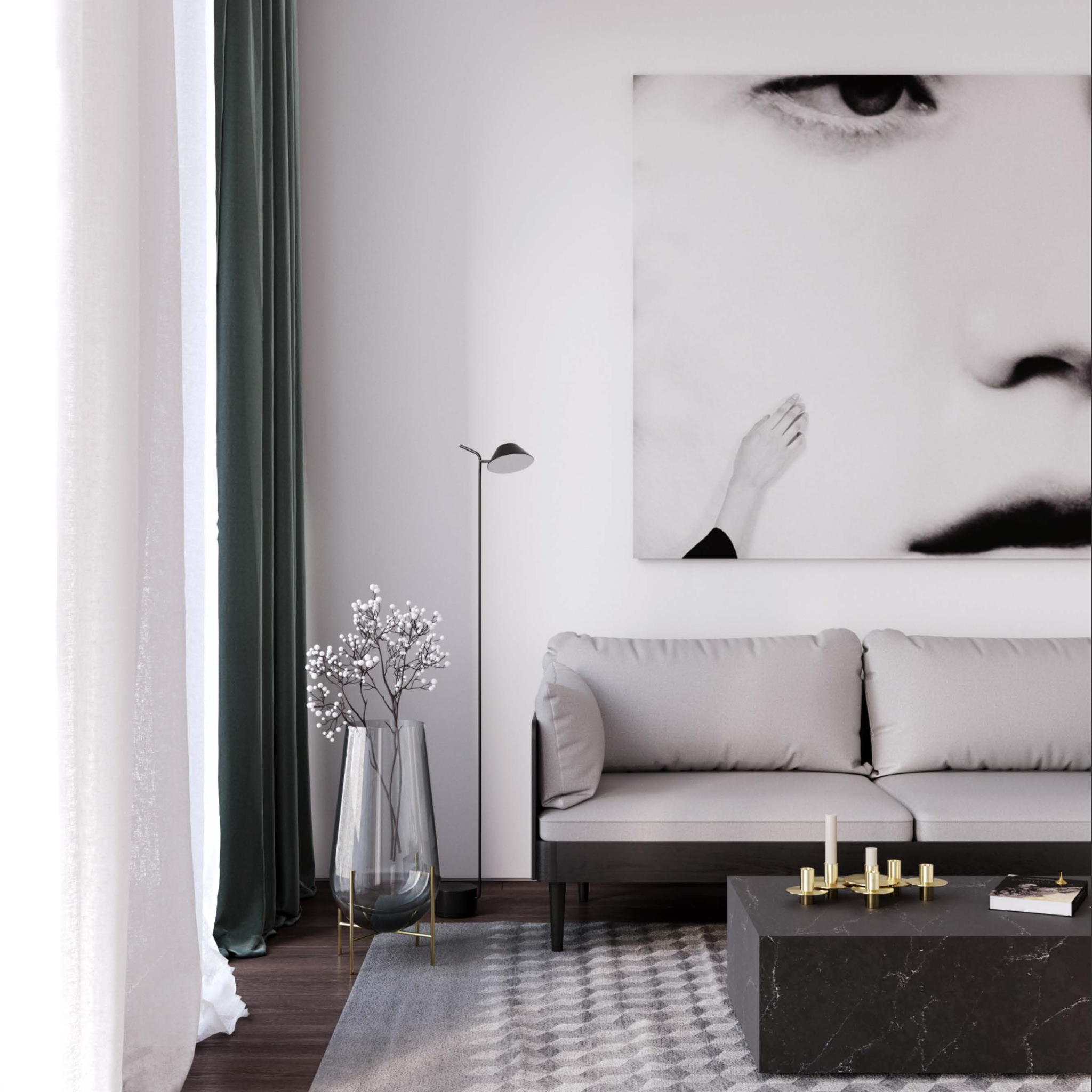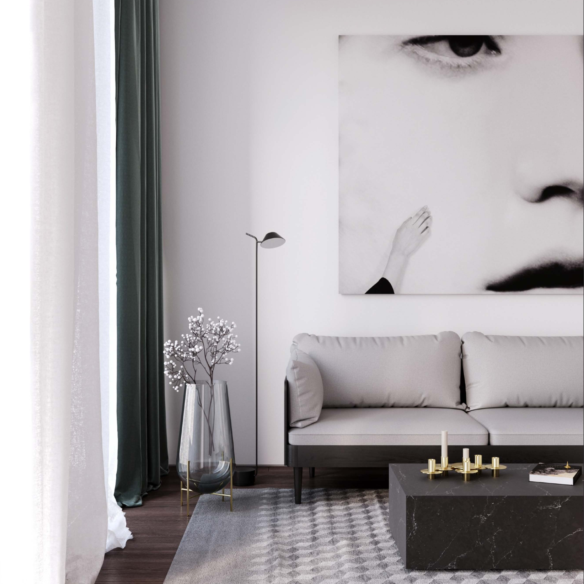 Из гостиной открывается вид на живописную террасу площадью 26 м², а второй уровень апартамента занимает просторная открытая терраса